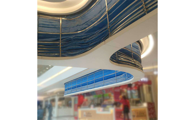 擋煙垂簾垂壁根據設計要求和現場實際情況采取如下施工順序:首先,搭設腳手架一放線一打眼--上脹栓一焊骨架。第二,吊件一安裝骨架…